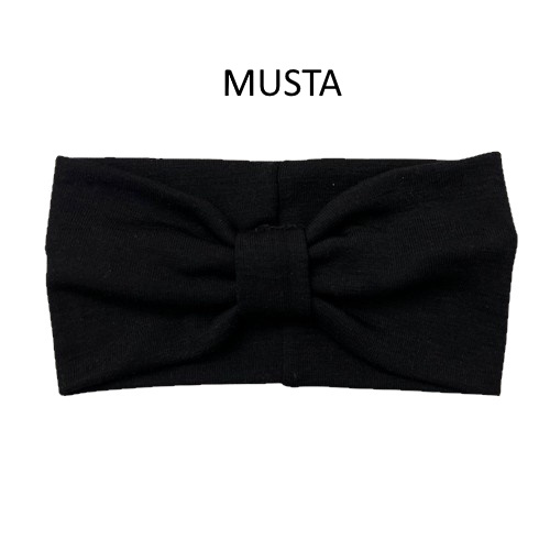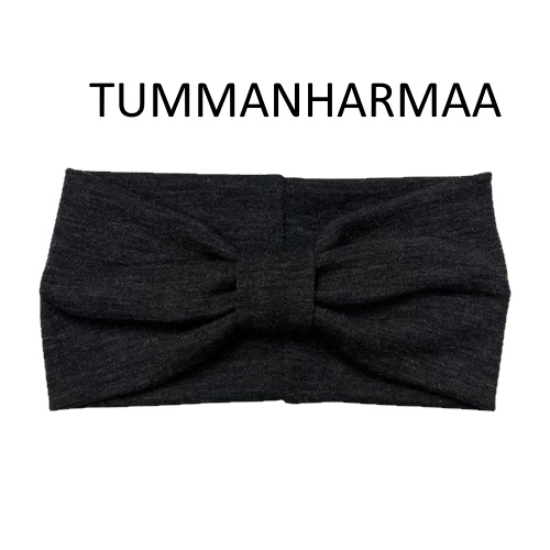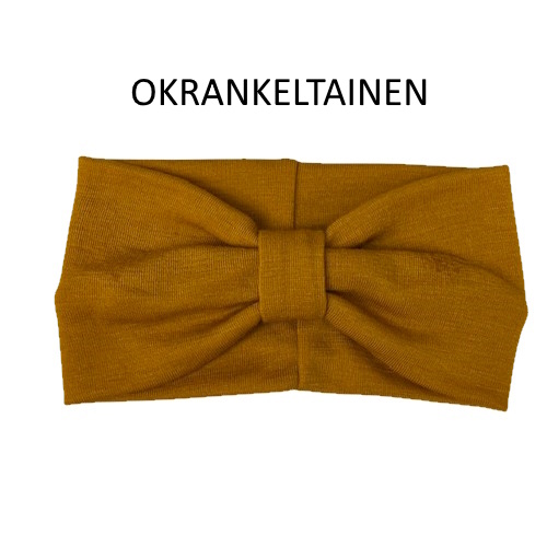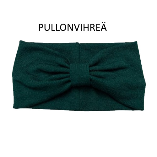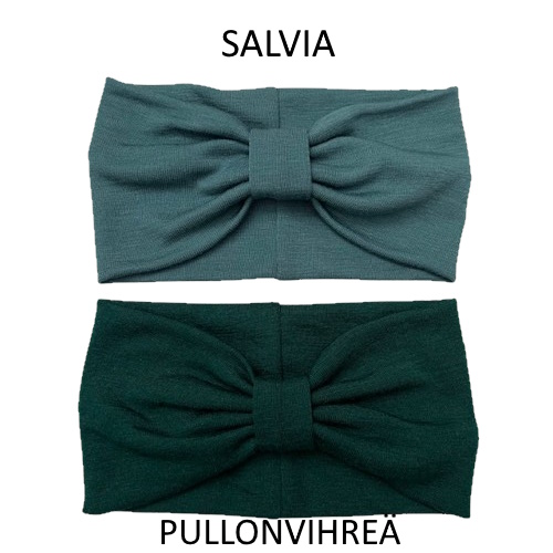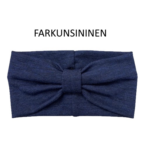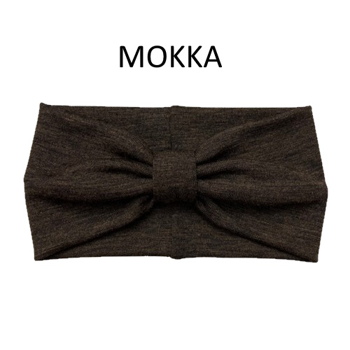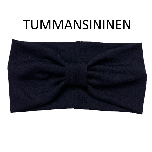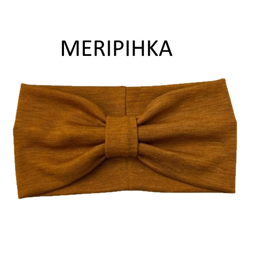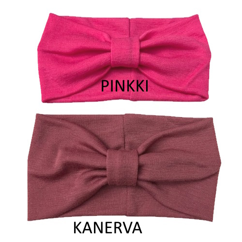 Merinovillapanta on noin 10cm leveä ja siinä on tamppi, joka tekee pantaan kivan rypytyksen ja näin se istuu kivasti päähän. Tampin paikkaa voi vaihtaa siirtämällä, koska sitä ei ole ommeltu kiinni.