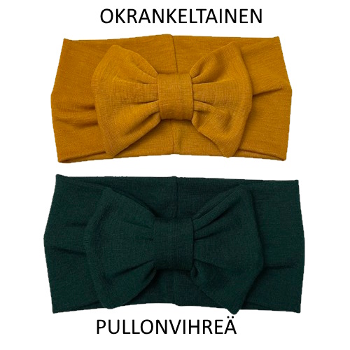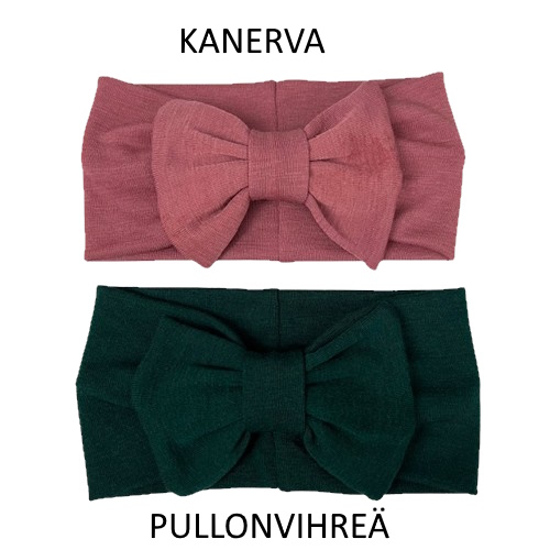Merinovillapanta on noin 10cm leveä ja siinä on tamppi, joka tekee pantaan kivan rypytyksen ja sen sisällä on RUSETTI, jonka leveys on n.14cm. Rusetti on irrotettavissa.