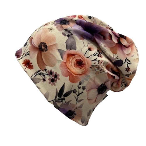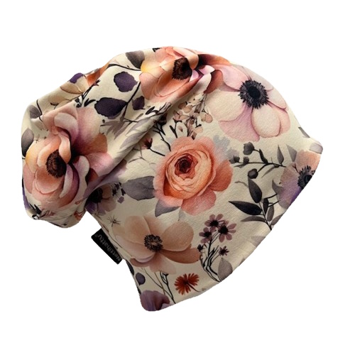 Trikoopipo ihanan joustavaa ja pehmeää puuvillatrikoota, malli jää kivasti vähän löpsölle päälaelta. Pesu 40 astetta.